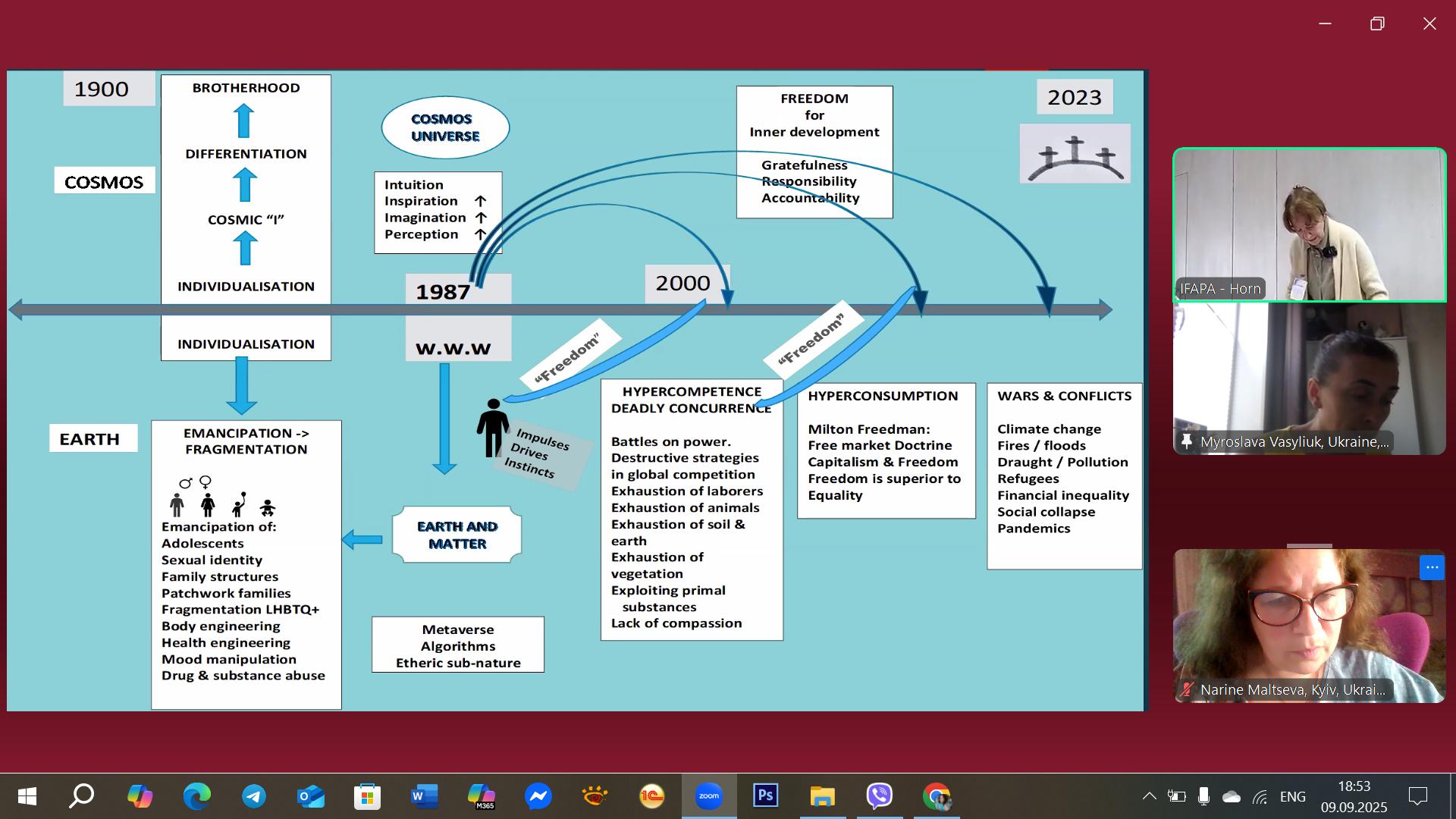 09.15 Презентація комплексного проекту світової психотерапевтичної спільноти щодо синдрому вигорання. Заклик з майбутнього відновити минуле і відкрити значущі перспективи для фізичного і ефірного тіла, для душі і духу – Жені Насі, Джованна Беттіні, Генрієтта Деккерс